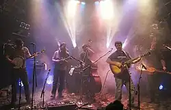 Greensky Bluegrass is a five-piece American bluegrass jam band founded in Kalamazoo, Michigan in mid-2000. The band has evolved over the years, growing from 3 to 5 members, adding electric effects, and touring with a full light show. Partly because of their name, many articles written about the band address the fact that what Greensky does is "not quite" bluegrass. In their own promotional material, GSBG describes their sound as "their own version of bluegrass music, mixing the acoustic stomp of a string band with the rule-breaking spirit of rock & roll".[1]