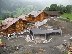 New houses with buried garages under construction in Grindelwald