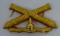 The coat of arms of the Härnösand Coastal Artillery Regiment (KA 5) was used by KA 5 from 1975 to 1994, by the Norrland kustartilleriförsvar med Härnösands kustartilleriregemente (NK/KA 5) from 1975 to 1994, by the Härnösands maringrupp med Härnösands kustartilleriregemente (HMG) from 1994 to 1997 and by the Härnösandsgruppen since 1997.[7] Blazon: "Argent, the town badge of Härnösand, a beaver, a pike in the mouth, both sable. The shield surmounted two gunbarrels of older pattern in saltire above a flaming grenade and waves".[7]