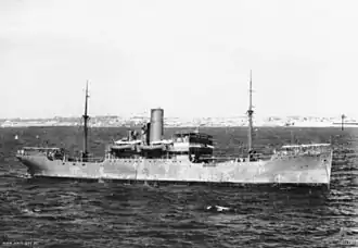 ![]() Cargo steamer Poyang prior to being requisitioned by the Royal Australian Navy in 1942. | |