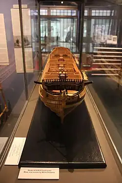 Her designer was Sir John Henslow.[3] She was named after the 80-gun Foudroyant, which Swiftsure and Monmouth, both 70-gun ships, and Hampton Court (64 guns), had captured from the French on 28 February 1758.