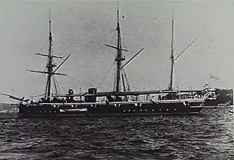 ![]() HMS Royalist anchored at Sydney c. 1890. | |