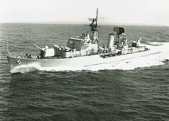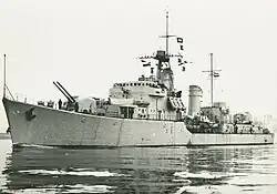 HNLMS Holland (D808) (Dutch: Hr.Ms. Holland) was the lead ship of her class of four destroyers built for the Royal Netherlands Navy in the early 1950s. HNLMS Holland is named after a former province of the Kingdom of the Netherlands[3] and was the twentieth ship with this name. In 1978 the ship was taken out of service and sold to Peru where it was renamed Garcia y Garcia. The ship's radio call sign was "PAOP".[4]