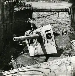On 17 September 1941, the destroyer was on patrol and drove off a Focke-Wulf Fw 200 Condor maritime patrol aircraft which was harassing a convoy.[10] On 27 September, Göteborg was at the centre of the Hårsfjärden disaster. The destroyer was docked at Hårsfjärden when the torpedoes exploded, followed by a similar explosion aboard the destroyer Klas Horn which was nearby. Göteborg sank in the harbour. Burning oil spilt onto the water, and 33 lives were lost, although it would have been worse had the majority of the crew not been on shore leave at the time. Nonetheless, it was the worst loss of life the country experienced in its territorial waters during the conflict.[11]