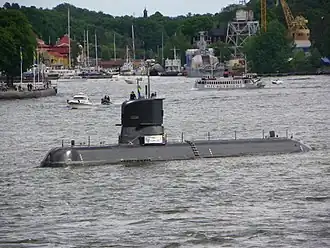 HSwMS Södermanland (Söd) is a Swedish naval submarine, launched in 1988 and currently in active service. She is the third ship of the Västergötland-class submarine and named after Södermanland, Sweden.