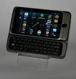 The HTC Desire Z (also marketed as T-Mobile G2 in the US) (codenamed HTC Vision)[3] is a slider-style smartphone developed by HTC Corporation and announced on 15 September 2010. It was released in Europe and Canada in November 2010, following a number of delays related to Google's quality assurance tests.[4] Other than its slider configuration, the Desire Z features specifications similar to the HTC Desire and the HTC Desire HD.[5] The design of the HTC Desire Z has capacitive face buttons rather than the mechanical ones the HTC Desire features.