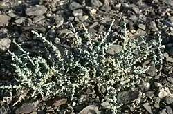 Some species of Halothamnus are important grazing plants for camels, sheep and goats,[6] and are therefore used for the recultivation of pasture,[7] for example Halothamnus subaphyllus, Halothamnus auriculus and Halothamnus glaucus. Halothamnus subaphyllus is planted for the stabilisation of mobile sands[6] and for the production of the medically used alkaloid Salsolin.[8][9] Halothamnus somalensis is used as medicinal plant against parasitic worms.[10] In former times Halothamnus subaphyllus and Halothamnus glaucus were used to extract potash for making soap.[11]