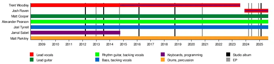 - Trenton Woodley – lead vocals (2008–2023), keyboards, programming (2014–2023)
