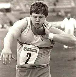 Hans Yngve Höglund (23 July 1952 – 4 October 2012) was a Swedish shot putter. He competed in the 1976 Olympics and finished eighth.[1] Höglund set his personal record of 21.33 m in Provo, Utah, United States, while winning the 1975 NCAA Championships for the University of Texas, El Paso. This results remained the Swedish national record for almost 50 years till Wictor Petersson broke it at the swedish indoor championships with 21.49 M. He also won three consecutive Swedish (1974–76)[3][4] and NCAA titles (1973 and 1975).[5]