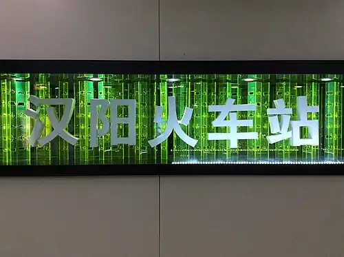 Hanyang railway station, located at Cuiwei Street in Hanyang District, Wuhan, Hubei, China, is a station of Jingguang Railway and Handan Railway. It will be the terminus of Inter-city rail, towards Qianjiang, Tianmen.[1] Hanyang railway station is served by a station of the same name on Line 4 of the Wuhan Metro.
