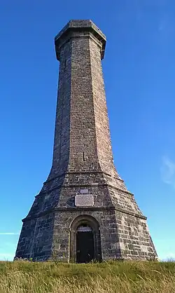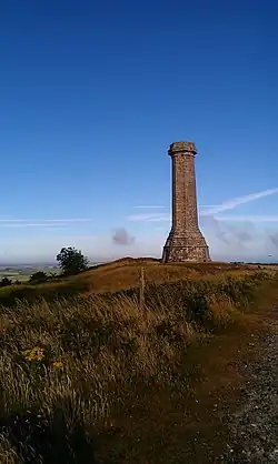 The Hardy Monument (sometimes referred to as Hardy's Monument) [1][2] is a 72-foot-high (22 m) monument on the summit of Black Down near Portesham in Dorset. It was erected in 1844 by public subscription in memory of Vice Admiral Sir Thomas Hardy, flag captain of Admiral Lord Nelson at the Battle of Trafalgar.[3] It has been owned by National Trust since 1938, when it was bought for £15, and is regularly opened for visitors can climb the 120 steps to the viewpoint at the top.