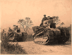 Roberts new battalion, the 326th, was assigned to the 304th Brigade, initially commanded by Patton. Two weeks prior to their initial entry into battle against the German forces, Roberts' battalion was issued 45 of the brigade's total of 144 French Renault FT17 tanks—the Automiltraillause a chenilles Renault FT modele 1917. One of the most revolutionary and influential tank designs in history, the popular FT17 weighed just over seven tons, and with 39 horsepower it had a top speed of 7 miles per hour. It was equipped with either the Puteaux SA 18, a single shot, breech-loading cannon capable of about ten rounds per minute or the 7.92 mm Hotchkiss heavy machine gun, capable of a rate of fire of 450 rounds per minute.[2]