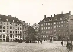 A haulier's business in the building was around the turn of the century taken over by Peter Frederiksen. In 1901, he and his wife Augusta opened a restaurant in the basement. The restaurant—which was then called Café Hauser Plads—had been founded by his parents Frederik and Marie Henriksen on the other side of the square (in the basement of No 11, now demolished) back in 1877. Peter Frederiksen had returned to Hauser Plads to assist his mother in the restaurant after his father's death in the early 1880s. The restaurant catered to the many farmers and coalers who visited the city on market day to sell their produce and charcoal on nearby Kultorvet and the city's other marketplaces, leaving their carriages and horses on Hauser Plads.[7]
