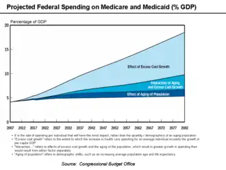 The Congressional Budget Office (CBO) has argued that health care costs are the primary driver of government spending in the long term.[7]