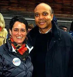 In November 2012, Mizeur told The Washington Blade that she was "taking a very serious look" at running for governor in 2014.[13] She began fundraising for a potential bid in January 2013,[14][15] before launching her campaign on July 16, 2013.[16] Her running mate was Reverend Delman Coates, a Prince George's County pastor who backed the state's 2012 same-sex marriage referendum.[17][18] If elected, she would have become Maryland's first female governor and the first openly gay person elected governor of any U.S. state.[5]