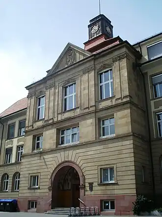 The school was founded in 1899. In 1934, the school was renamed Langemarck-Realgymnasium, named after the location of the World War I Battle of Langemarck. It was one of the earliest schools renamed in the era of National Socialism in Germany.[1] From the end of the war until Feb.25th, 1946, the school building was requisitioned by the French occupying forces. Today Hegau-Gymnasium has a so-called Abi-Bac section and boasts the title of "Partner School for Europe".