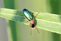- ^ Hall, Donald W.; Butler, Jerry F. (1969-12-31). "Palmetto Tortoise Beetle, Florida Tortoise Beetle (unofficial common names), Hemisphaerota cyanea (Say), (Insecta: Coleoptera: Chrysomelidae: Cassidinae)". EDIS. 2002 (9). doi:10.32473/edis-in388-2001. ISSN 2576-0009.