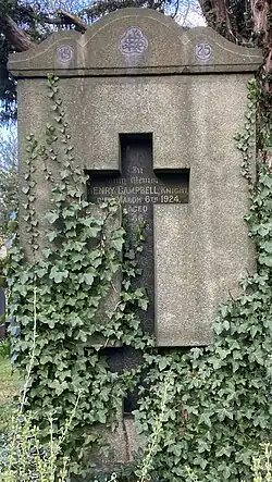 Campbell died on 6 March 1924 in London where he had come for an operation, and is buried on the east side of Highgate Cemetery. He had married for a second time in 1910 or 1911, and left a widow Alice (Harbottle Fogan). One of his sons became a barrister, being called to the bar in 1907 and practising in Dublin and on the Irish North West circuit.