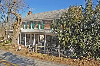 The farmhouse is a banked, two-and-one-half-story Pennsylvania German, vernacular dwelling built of rough cut brownstone. It measures forty-eight feet wide by twenty-three feet deep.[2]