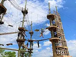 | TalithaKoum | A challenging aerial adventure course with three levels ranging from 15 to 40 feet high. Includes rope and cable bridges, teetering platforms, swinging beams, cargo nets, among other elements. | -Weight requirement: between 75-250 pounds -Closed toe shoes and shorts/pants must be worn | ![]() |