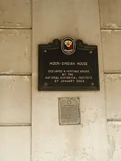 - ^ Official marker installed by the National Historical Institute names the site as Hizon-Singian House