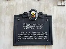 - ^ Additional name on the marker installed by the National Historical Institute is Sarmiento- Osmeña House