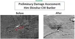 Both sites were destroyed during the April 2018 strike, which was led by the United States with British and French participation.[2][3] The U.S. military said following the airstrikes that the Him Shinshar complex was "completely destroyed" in the airstrikes.[3]