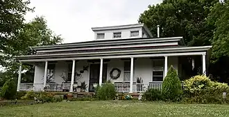 The Hiram Palmer House is a historic house located at 703 East Fort Street in Farmington, Illinois. Hiram and Philynder Palmer built the house in 1851–52 but sold it the year it was completed. In 1856, the house was purchased by Riley Bristol, a local pharmacist and founder of Farmington's First Congregational Church; Bristol lived in the house until 1882. The house has a Greek Revival design, a nationally popular stylistic choice in the first half of the nineteenth century. The wraparound front porch is supported by Tuscan columns. The house's low hip roof features a plain frieze and cornice at the roof line and is topped by a lantern with a cornice and pediment. The house's interior features decorative Greek Revival woodwork, including carved door and window moldings, ornamental panels by the windows, and a fireplace mantel supported by pilasters.[2]