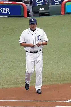 Hisanobu Watanabe (渡辺 久信 born August 2, 1965) nicknamed "Nabe-Q", is a Japanese former professional baseball pitcher. He played in Nippon Professional Baseball (NPB) for the Seibu Lions and Yakult Swallows, and in the Taiwan Major League (TML) for the Chiayi-Tainan Luka.