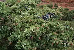 The other area has one of the most extensive stands of juniper, Juniperus communis, in County Durham. Unlike most populations of juniper in Britain, in which regeneration is, at best, sparse, this community is freely-regenerating and has a diverse age composition.[1]