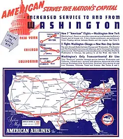 American Airlines was developed from a conglomeration of 82 small airlines through acquisitions in 1930[2] and reorganizations; initially, American Airways was a common brand used by a number of independent carriers. These included Southern Air Transport[3] in Texas, Southern Air Fast Express (SAFE)[4] in the western United States, Universal Aviation[5] in the Midwest (which operated a transcontinental air/rail route in 1929), Thompson Aeronautical Services[6] (which operated a Detroit-Cleveland route beginning in 1929), and Colonial Air Transport[7] in the Northeast. Like many early carriers, American earned its keep carrying U.S. Mail. By 1933, American Airways operated a transcontinental route network serving 72 cities, mostly in the northeastern, midwestern, and southwestern United States.[8]