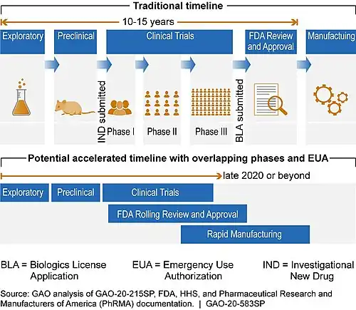 - "Vaccine Development – 101". U.S. Food and Drug Administration. 12 April 2021. Archived from the original on 20 November 2020.