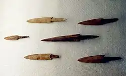 The archaic human species of Homo erectus arrived in Eurasia sometime between 1.3 and 1.8 million years ago (Ma) and numerous remains of its subspecies have been found in what is now China.[1] The oldest of these is the southwestern Yuanmou Man (元谋人; in Yunnan), dated to c. 1.7 Ma, which lived in a mixed bushland-forest environment alongside chalicotheres, deer, the elephant Stegodon, rhinos, cattle, pigs, and the giant short-faced hyena.[2] The better-known Peking Man (北京猿人; near Beijing) of 700,000–400,000 BP,[1] was discovered in the Zhoukoudian cave alongside scrapers, choppers, and, dated slightly later, points, burins, and awls.[3] Other Homo erectus fossils have been found widely throughout the region, including the northwestern Lantian Man in Shaanxi, as well minor specimens in northeastern Liaoning and southern Guangdong.[1] The dates of most Paleolithic sites were long debated but have been more reliably established based on modern magnetostratigraphy: Majuangou at 1.66–1.55 Ma, Lanpo at 1.6 Ma, Xiaochangliang at 1.36 Ma, Xiantai at 1.36 Ma, Banshan at 1.32 Ma, Feiliang at 1.2 Ma and Donggutuo at 1.1 Ma.[4] Evidence of fire use by Homo erectus occurred between 1–1.8 million years BP at the archaeological site of Xihoudu, Shanxi Province.[5]