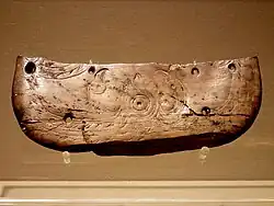 The Neolithic Age in China is considered to have begun about 10,000 years ago.[8] Because the Neolithic is conventionally defined by the presence of agriculture, it follows that the Neolithic began at different times in the various regions of what is now China. Agriculture in China developed gradually, with initial domestication of a few grains and animals gradually expanding with the addition of many others over subsequent millennia.[9] The earliest evidence of cultivated rice, found by the Yangtze River, was carbon-dated to 8,000 years ago.[10] Early evidence for millet agriculture in the Yellow River valley was radiocarbon-dated to about 7000 BC.[11] The Jiahu site is one of the best preserved early agricultural villages (7000 to 5800 BC). At Damaidi in Ningxia, 3,172 cliff carvings dating to 6000–5000 BC have been discovered, "featuring 8,453 individual characters such as the sun, moon, stars, gods and scenes of hunting or grazing", according to researcher Li Xiangshi. Written symbols, sometimes called proto-writing, were found at the site of Jiahu, which is dated around 7000 BC,[12] Damaidi around 6000 BC, Dadiwan from 5800 BC to 5400 BC,[13] and Banpo dating from the 5th millennium BC. With agriculture came increased population, the ability to store and redistribute crops, and the potential to support specialist craftsmen and administrators, which may have existed at late Neolithic sites like Taosi and the Liangzhu culture in the Yangtze delta.[10] The cultures of the middle and late Neolithic in the central Yellow River valley are known, respectively, as the Yangshao culture (5000 BC to 3000 BC) and the Longshan culture (3000 BC to 2000 BC). Pigs and dogs were the earliest-domesticated animals in the region, and after about 3000 BC domesticated cattle and sheep arrived from Western Asia. Wheat also arrived at this time but remained a minor crop. Fruit such as peaches, cherries and oranges, as well as chickens and various vegetables, were also domesticated in Neolithic China.[9]