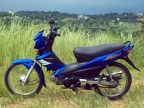 The Honda Bravo is a four-stroke 100 cc (6.1 cu in) underbone class motorcycle designed and manufactured in the Philippines.[1] The frame and engine of the Honda Bravo is the same as the Honda Wave 100 of Thailand, and they differ only in the plastic body fairings. This motorcycle is related to the Honda XRM, which is also designed and manufactured in the Philippines. It uses an aluminium engine.