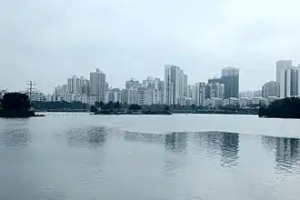 Hongcheng Lake (Chinese: 红城湖) is a lake in Haikou, Hainan, China. It was renovated around 2017 to 2018.[1] It has three islands. Two small, and one, at the west side, is larger with short bridge access and an old, dilapidated building on it.