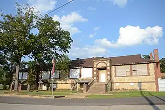 The Horace Mann School Historic District of Norfork, Arkansas encompasses a complex of four Depression-era school buildings near the center of the community. It includes a main school building, built with Works Progress Administration (WPA) funding in 1936, a home economics building and a vocational educational building, both built in 1937 by the National Youth Administration, and the auditorium/gymnasium, built in 1940 with WPA funds. All are single-story Craftsman-style buildings, although the gymnasium presents more stories because of a partially exposed basement. The complex was used as a school until the mid-1980s, and is now owned by the city, which uses the buildings for a variety of purposes. It is a well-preserved and remarkably complete Depression-era school complex.[2]