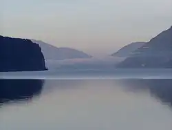 The Hornindalsvatnet lake is the deepest lake in Europe at 514 metres (1,686 ft) deep. None of the glacier streams run out into the lake and this has resulted in one of Europe's clearest lakes.[33]