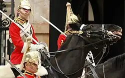The horse tongue is highly sensitive, and therefore vulnerable to injury.[3][40] The main cause of lingual injuries in horses is from mishandling or accidents related to a bit.[3] A horse's tongue may hang over the bit for various reasons, particularly if the rider's hand is too heavy or if the bit is ill-suited to the horse's mouth, leading to a lack of control. In such cases, the horse may allow its tongue to hang out to the side.[41] This behavior is to be distinguished from tongue stereotypies, as its origin is not the same.[42] To mitigate this issue, "snaffle" bits and anti-tongue breakers can be added to the mouthpiece.[43]