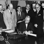 During the 81st Congress, Republican Sen. Robert A. Taft sponsored the legislation with Democratic backers Allen J. Ellender and Robert F. Wagner.[4] On April 21, 1949, the Senate approved the legislation by a vote of 57–13, with all but two of the "nay" votes coming from Republicans. The House of Representatives voted 227–186 in favor of the bill on June 29, 1949.[7] President Truman signed the bill into law on July 15, 1949.[8]