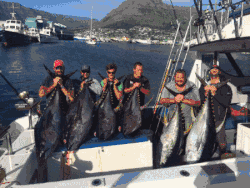 Hout Bay is the base port to several sports fishing charter boats and offers yellowfin tuna (Thunnus Albacares), longfin tuna (Thunnus Alalunga), and yellowtail (Seriola Lalandi) fishing. A variety of pelagic sea bird species may be sighted at different times of the year.