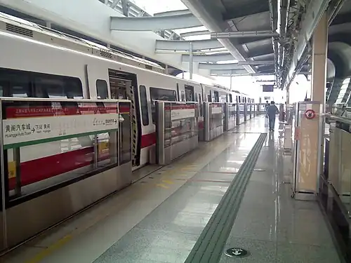 Huangge Auto Town Station (simplified Chinese: 黄阁汽车城站; traditional Chinese: 黃閣汽車城站; Cantonese Yale: Wòhnggok Heichēsìhng Jaahm) is an elevated station of Line 4 of the Guangzhou Metro.[1] It started operations on 30 December 2006. It is located at the junction of Shinan Road[2] and Huangge Road North[3] in the town of Huangge, Nansha District, next to Guangzhou Toyota Auto Town,[4] a plant operated by Toyota.[5][6][7][8]
