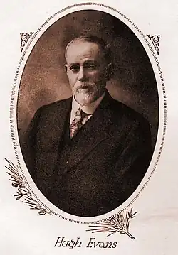 Hugh Evans (14 September 1854 โ 30 June 1934) was a Welsh publisher and author. He founded the Gwasg y Brython press and was the author of many books and articles about life in rural Wales and Welsh folklore, as well as a series of books for children.