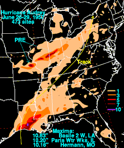- ^ a b c d e f g h i Reichelderfer, F. W.; Weeks, Sinclair (July 1, 1957). Baldwin., J. L. (ed.). National Summary for Week Ending July 1, 1957 (Report). Weekly Weather and Crop Bulletin. Vol. 44. Washington, D.C.: United States Weather Bureau. Retrieved June 26, 2018.