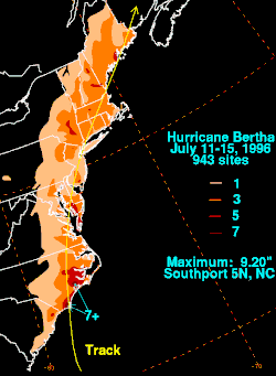 - ^ a b c d e f Miles B. Lawrence (1996). "Hurricane Bertha Tropical Cyclone Report". National Hurricane Center. Archived from the original on 2010-08-25. Retrieved 2008-02-13.