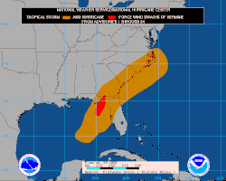 On August 30, the NHC began issuing tropical cyclone warnings and watches for the Florida Gulf Coast. By the time Hermine reached hurricane status, a hurricane warning was in place from the mouth of the Suwannee River to Mexico Beach. A tropical storm warning extended southward to Englewood, which included the Tampa Bay Area, and westward to the WaltonBay county line. A hurricane watch was also in effect from the mouths of the Suwannee and Anclote rivers. On August 31, a tropical storm watch was added for the Atlantic coast between Marineland, Florida, to the Altamaha Sound in Georgia. As Hermine approached and moved up the coast, tropical storm warnings were in place as far south as Marineland, and as far northeast as Sagamore Beach, Massachusetts, including portions of the Tidal Potomac River, the Chesapeake and Delaware bays, Long Island Sound, New York City, Block Island, Martha's Vineyard, Nantucket, and Cape Cod. All tropical storm warnings were dropped when the NHC discontinued advisories at 18:00 UTC on September 6.[2]