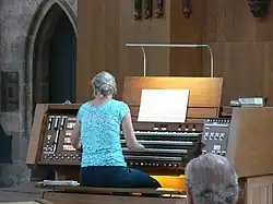 The first page of "Gaudete" (Latin for "rejoice"), a sacred Christmas carol published in Piae Cantiones (1582). This songbook had mostly religious songs, some which were mixed language with both Latin and Swedish.[a] - Regal organ made in 1988 based on an instrument made c. 1600. From the Germanisches Nationalmuseum.