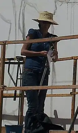 Her career came to notice when she came to Europe to take a master's degree at the Technical University of Valencia[2] and she became involved in street art. She was introduced to the appeal of murals by Escif who is based in Valencia.[3] He was born in 1997 and his art consists of simple images designed to make the viewer think.[4] Hyuro's first mural on a wall was in 2010.[3] Hyuro's images are also monochrome or with very muted colours. Initially her work was illegal but then she was asked to take part in festivals where the paintings were permitted by the organisers.[2]