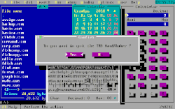 ![]() IBM HandShaker 7.5, system floppy disk of IBM DOS 2.1, file manager mode with ASCII table, calendar, and calculator | |
