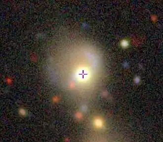 The host galaxy of III Zw 2 was initially classified as a spiral galaxy.[6][7] However according to a recent study made on its budge and disk decomposition via Hubble Space Telescope in 2009, it has since been reclassified as an elliptical galaxy.[8] It has a star-forming tidal bridge feature indicating a merger with a companion galaxy.[9] Furthermore, III Zw 2 belongs to a class of radio-intermediate quasars[10] and is a member of a triple galaxy system.[11]